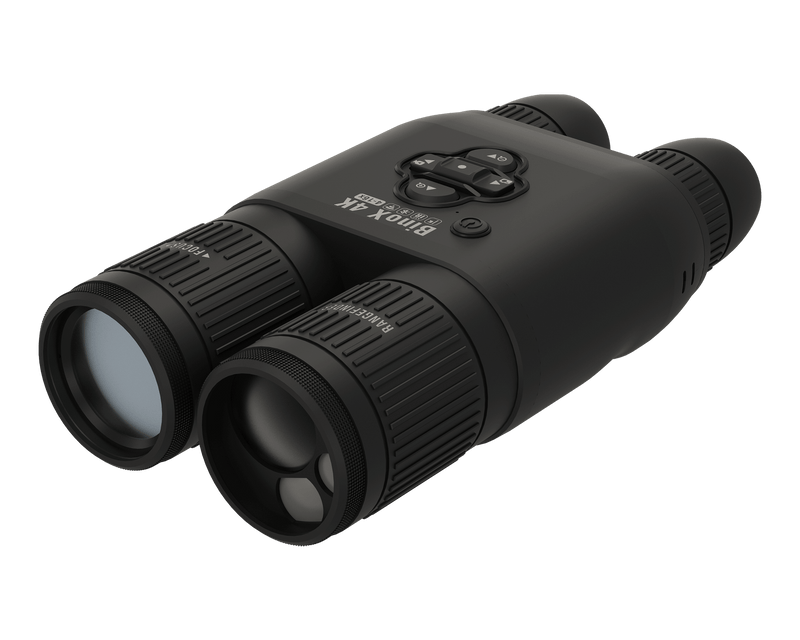See objects, animals, or persons in the dark, determine how far away they are, take (and stream) video, and even send ballistic info to your compatible riflescope with the BinoX-4K 4-16x65 Night Vision Binocular with Laser Rangefinder. This versatile optic shows day and night imagery on an internal 1280 x 720 display, with a built-in infrared illuminator enabling its 3864 x 2218 sensor in the darkest environments. Its built-in laser rangefinder measures distance from 5 to 1000 yards with 1-yard accuracy, and the BinoX-4K can send range information via Bluetooth to a compatible ATN SMART HD riflescope to determine point of impact with no need for a holdover. The BinoX-4K can capture still images or 1080p video at 30, 60, or 120 fps (daylight only), and saves them to a user-supplied microSD card (4 to 64GB). You can stream video - at the same time you record it - over Wi-Fi to an iOS or Android device running the ATN Obsidian 4 app. On your device, you can save, view ,and share your content. The BinoX-4K will run for 15 hours on a fresh charge; charge time with a user-supplied 2A adapter is 6 hours, using the included USB Type-C cable. Its housing is weather-resistant.