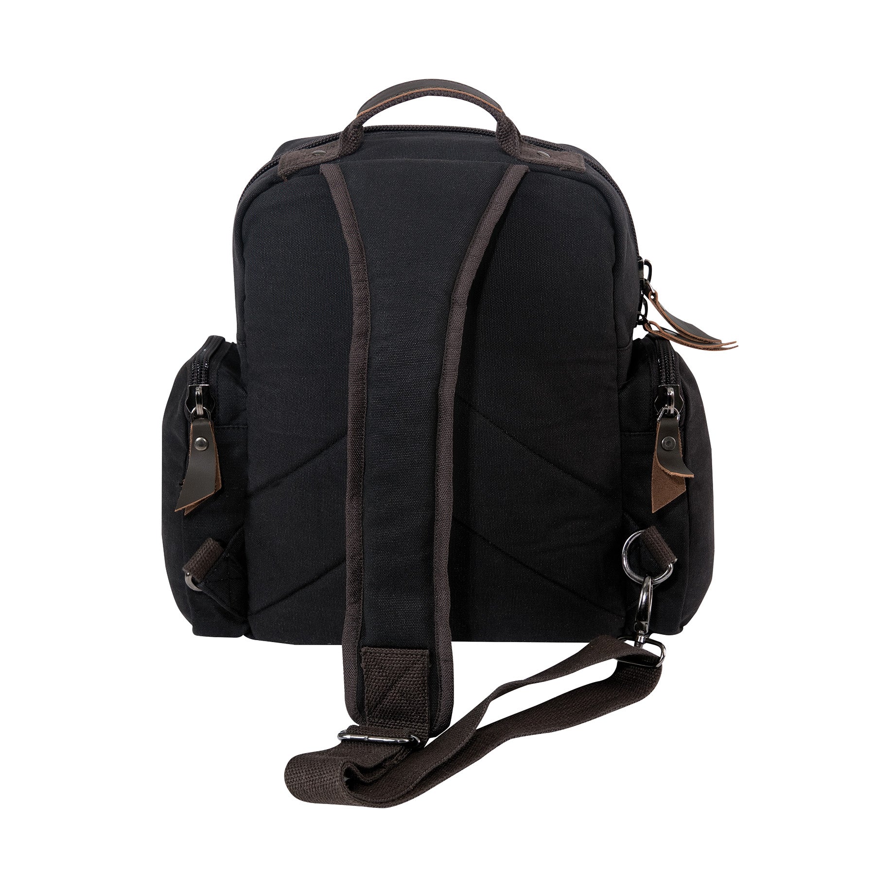 This versatile sling backpack is the perfect bag for your next trip. The compact canvas bag combines a classic vintage look with modern leather and metal accents. ?˜ Vintage Canvas Sling Backpack is equipped with several organization pockets that are great for holding essential everyday items and can even fit small electronic devices like a 13-inch laptop or tablet.?˜