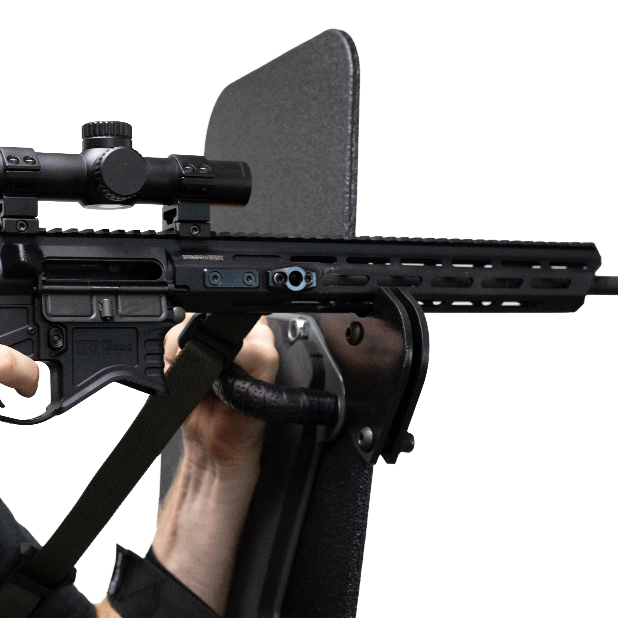 When you’re operating behind a ballistic shield, one arm is dedicated to holding the shield — leaving your weapon-hand to do the work. The Caliber Armor Weapons Support Bracket is designed to give your weapon hand the stability it needs.