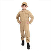 Kids Air Force Type Flightsuits are the perfect costume for your future aviator! Four zippered slash pockets, numerous leg pockets with zipper closure (one with snap) and a zippered utility pocket provide tons of space for your little one to carry all their gear. Three loop fields allow for personalization through adding flag, or morale patches, while the left chest showcases a hook and loop name badge holder to attach a name tag. A 2-way front zipper closure helps to fastens their flight suit shut while adjustable waist and wrist cuff tabs with hook and loop closure on this pilot costume help to maintain the perfect fit. This kids flight suit designed with a cotton/poly material for a winning combination of comfort and durability to withstand any adventure. This children aviation suit includes underarm holes or vents for increased breathability while playing. Our military inspired flightsuit features a collar, keeping with the recognizable flight suit appearance and reinforced shoulders on this children coverall prevent wear. Pleated leg zippers are incorporated onto the front-bottom of this kids flying suit pant leg to zip over or under boots. The kids military flight suit coveralls are great for Halloween, paintball and costumes.?ÿ