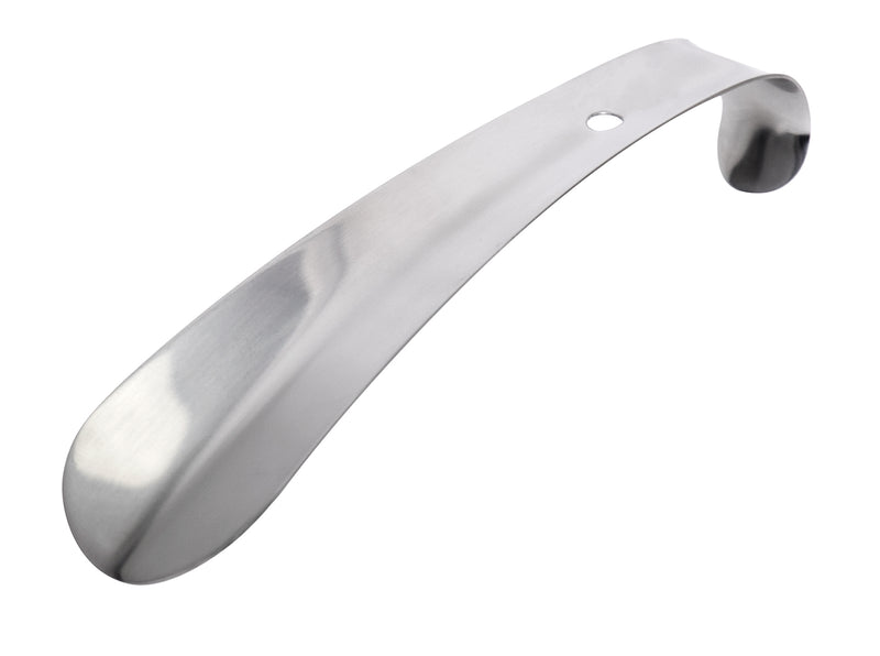 stainless steel shoe horn is designed to comfortably curve to your heal for easy use without discomfort. Lightweight and compact in size (6Ÿ?� x 1.5/8Ÿ?�) and made of 100% high quality stainless steel. The curved end allows for increased grip and stability while taking on and off your shoes.?˜ Designed with a convenient eye-hole allows you to hang it easily in your home or office. Made of 100% high quality stainless steel.