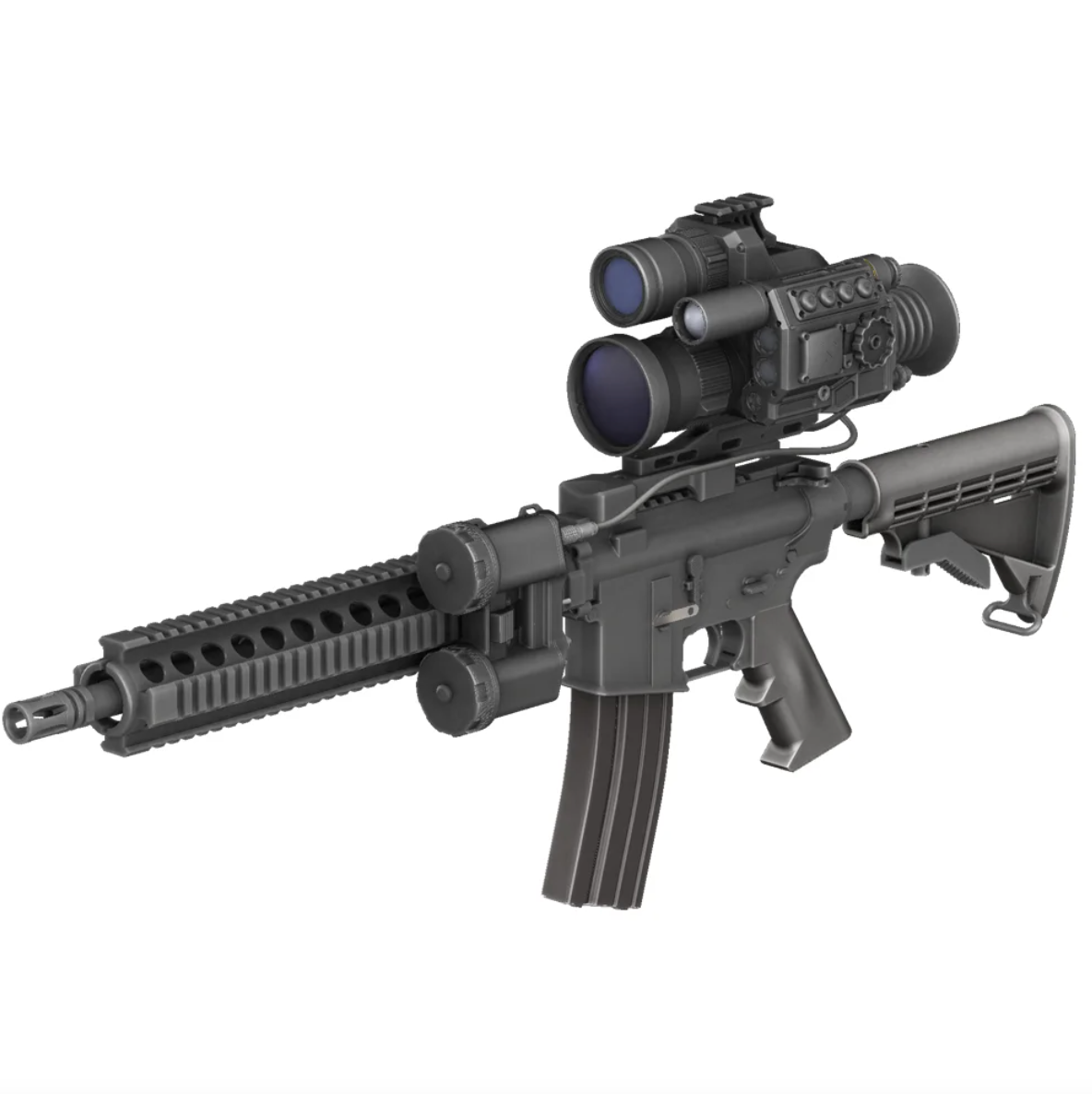 The QUADRO-SLR™ presents a range of game-changing features and techniques that are poised to become the industry standard. With interchangeable objective lenses of 50, 75, and 100mm, it achieves unparalleled detection range, ensuring maximum effectiveness. Deployable across multiple platforms and adaptable to diverse tactical scenarios, this advanced sight thrives in any environmental conditions.