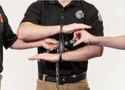 The exclusive, efficient design of the Transport Kit allows the handcuffs to remain safely in place while the transport system is applied, adjusted or removed to prepare a subject for transport, booking or court. The chain version is ideal for corrections use, while the belt version, available here, is an option for applications like aviation security, where weight is a consideration. The belt version is also a good choice where the noise of a chain might be undesirable, such as in a courtroom. The chain version of the Transport Kit is a compact, all-steel restraint system that maximizes subject control during transport. It features a tongue that slides through a purpose-specific channel in our revolutionary Rigid Ultra Cuff wrist restraints. A high-security, proprietary lock fastens to the tongue instantly, without the key inserted - another important safety feature. The key, which engages a cylinder lock with 2,187 possible unique keyway configurations, is only used to remove the system. A heavy-duty spring clip at the opposite end of the chain is used to safely secure any unused length behind the subject.