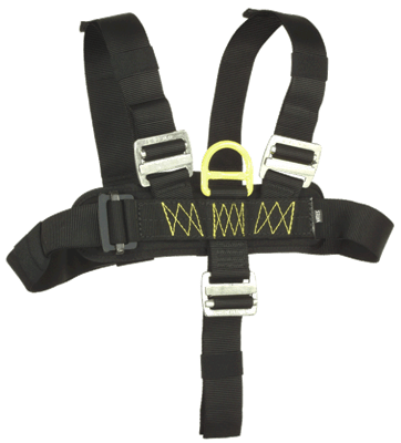 Chest harness designed to be added to a compatible seat harness to create a Class III full body harness. Includes front D ring for high point of attachment for belay line. Helps in keeping user upright. Warning shoulder straps are not intended for vertical lifting.