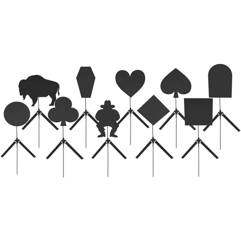 This Practice Target comes with your choice of 10 different official CAS shapes made from 3/8" AR500 armor steel so it can withstand anything from .22 to .44 Magnum as well as cowboy action rifle loads* from as close as 10 yards. Each target has a perfectly flat shooting surface with no exposed bolts, clamps, or brackets and is angled forward to direct dangerous ricochet and splatter into the ground. This Practice Target also comes with the option for a 1" x 2" Target Holder which attaches to the stand and allows you to shoot on paper and cardboard targets by inserting 1" x 2" wood strips into the clamps and attach the target to the wood strips.