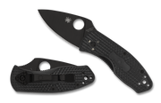 The smallest member of Spyderco’s popular Value Folder series, the Ambitious is an ultra-compact cutting tool that cuts with big-knife authority. In its lightweight configuration, it trades the G-10 scales of the original for injection-molded fiberglass-reinforced nylon (FRN) with a high-traction Bi-Directional Texture pattern. Taking that evolution one step further, the Ambitious Lightweight Black Blade cloaks the knife’s full-flat-ground 8Cr13MoV stainless steel blade in a non-reflective black oxide coating. Consistent with that theme, the handle’s full skeletonized stainless steel liners, four-position pocket clip, and other hardware also sport stealthy black coatings. Available in a choice of either PlainEdge or fully serrated SpyderEdge, both configurations feature a sturdy LinerLock mechanism to lock the blade securely open during use.