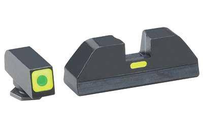 Description: Green tritium front sight with lumi outline, rear sight has lumi horizontal line in center