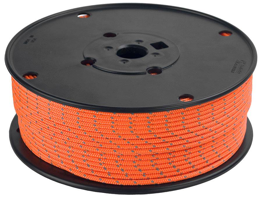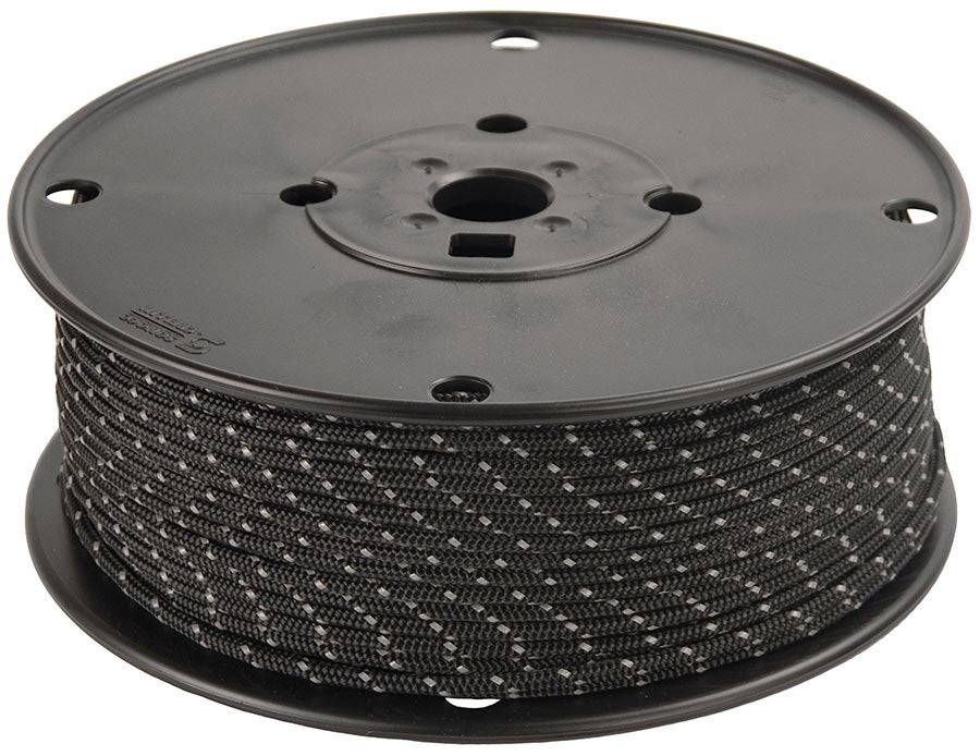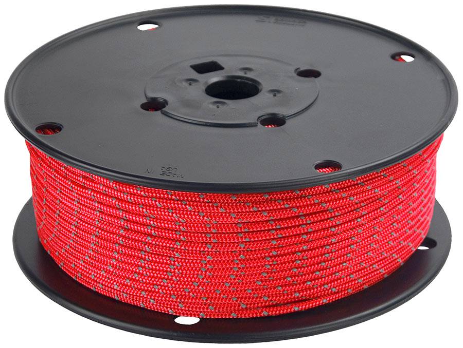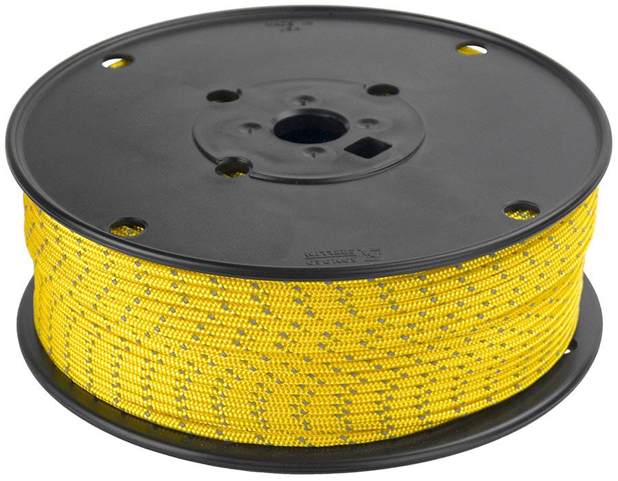 Originally developed by BlueWater over three decades ago, Reflective Niteline accessory cord features a reflective filament strand in the sheath for added safety and convenience for a multitude of applications. Polyester sheath on a braided polyester core minimizes wet and dry elongation characteristics. Ideal for utility lines where high nightime visibility is desired. Manufactured in the U.S.A. from Domestic and Globally sourced raw materials.