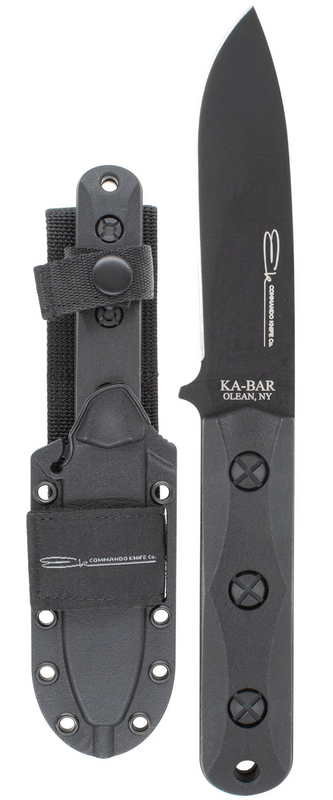 The EK51 Short Drop Point has a 1095 Cro-Van clip point blade that measures 5.0625 in length. The EK50 is 8.5 overall and weighs 0.65 lb. A MOLLE compatible Celcon sheath that is manufactured in the USA comes with the EK51. Knife manufactured in the USA with German steel.