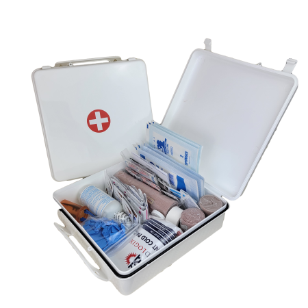 The White Series Kits are all General First Aid Kits that are in white plastic cases. The 24 Unit has over 85 First aid supplies that is designed to accommodate 25 different situations. The 25 Unit White Series box comes with a water tight rubber gasket and to latches to seal the box. General First Aid Kit are the least that every American should have in their house, office or car. These kits serve basic needs but can prevent mild wounds from becoming worse infections or other life threatening scenarios. Make sure to always be prepared and make a checklist of what you need when you’re on the go. Let us help you with that checklist here. It’s always best to be prepared for any situation, no matter how small.