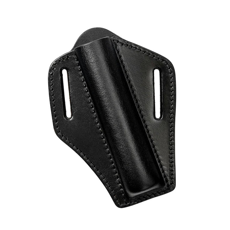 The scabbard is meticulously crafted of fine leather with topstitched finishing touches. Its tough, multi-layer construction holds the baton securely and will endure years of constant use. Slide-through slots accommodate belts up to 1.5” wide.