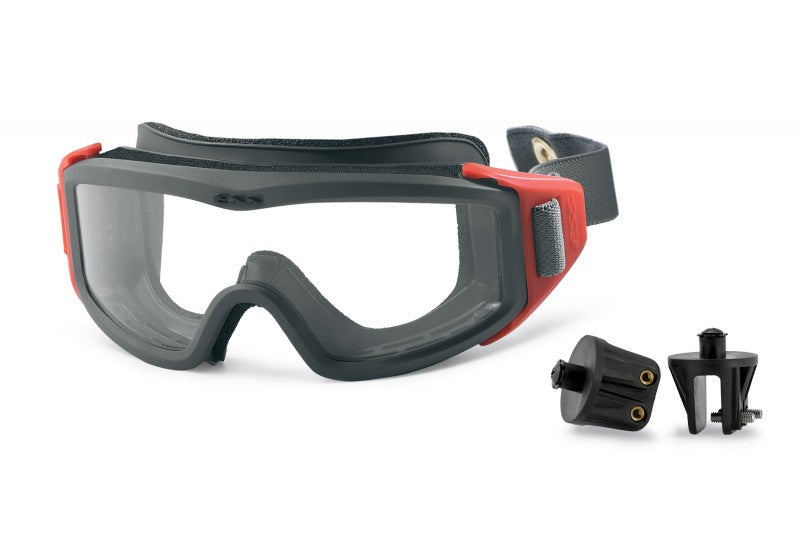 Low-profile frame, two-piece strap w/Snap-On/Snap-Off mounting brackets. The ESS FirePro-1977 Series includes the most advanced low-profile willdand fire and rescue goggles on the market. The compact frame design prevents helmet interference while increasing peripheral vision. The FirePro-1977 is certified to meet the NFPA 1977 wildland fire equipment performance requirements, including the 350F for 5-minute oven test. They are also U.S. Federal OSHA compliant, exceed the requirements of ANSI Z87.1-2010, and are considered Primary Eye Protection by NFPA 1500.