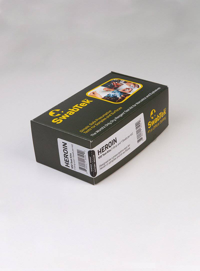 SwabTek’s Heroin Test Kit is designed to test for the presumptive presence of heroin in any sample. Since the kit uses a treated cotton swab, it can be used to test for heroin residue on any surface without the presence of a visible powder. This allows the user to test any surface that is suspected to have come in contact with the drug, including spoons, needles, baggies and hands.The test is simple and intuitive — and contains no acids, carcinogens or toxic liquids — eliminating any potential risk to the user during testing.