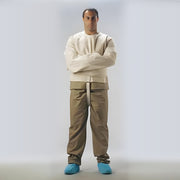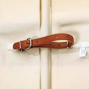 Heavy cotton duck, 12/13 oz leather, steel loops, 1" cotton web, brass grommets, 1½" press tape, and crotch strap with 1¼" cotton web and spring buckle.