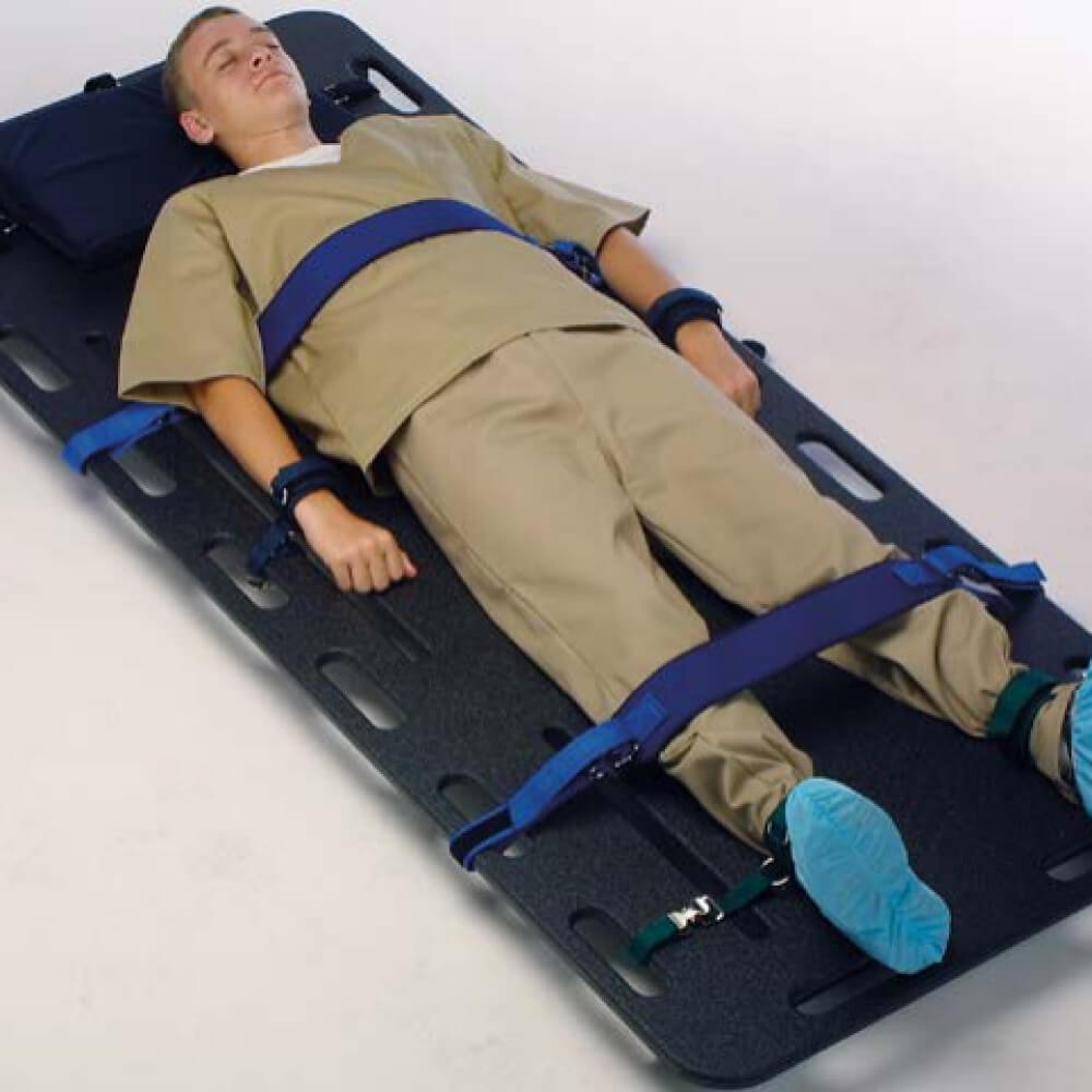 2½" tall (two 1½" runners on bottom for easy lifting); pillow; multiple handles. Restraints are included.