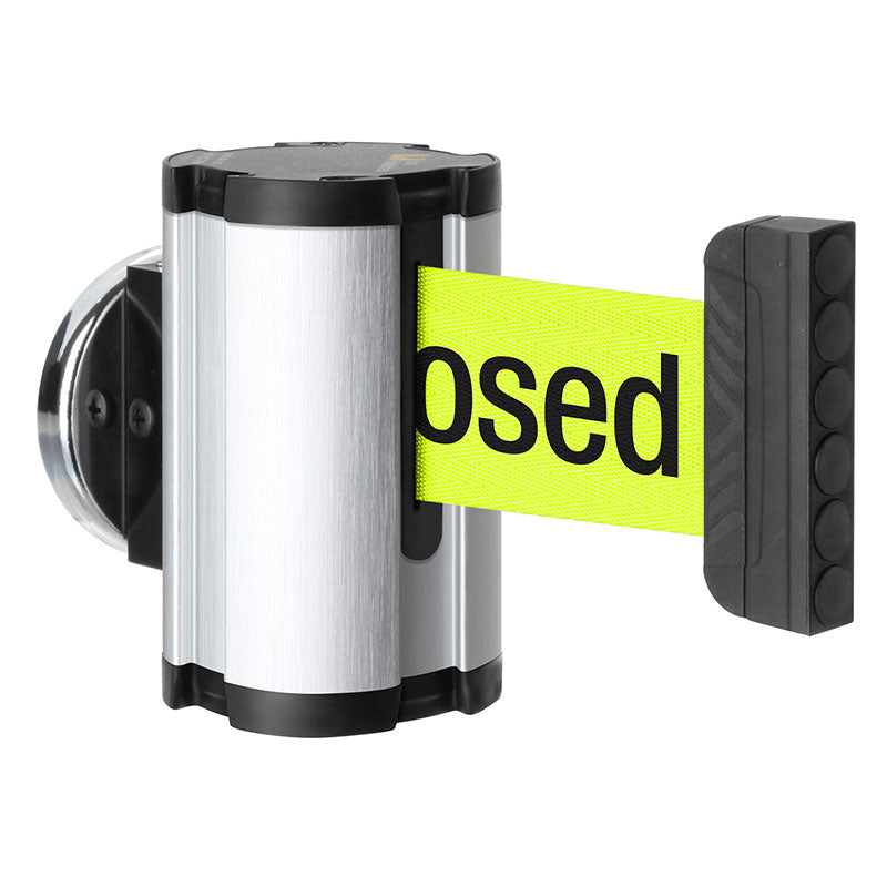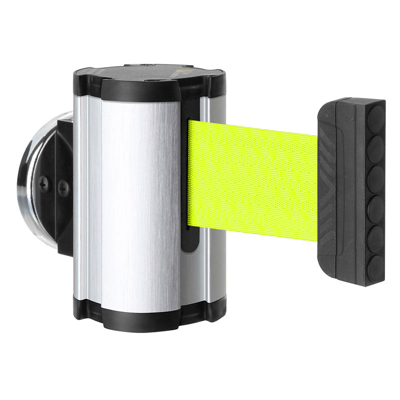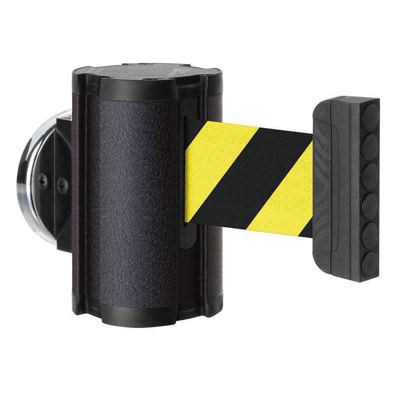 Wall-mounted Retractable Belt Barriers give you the benefits of a stanchion-and-belt system without taking up valuable floor real estate. Our Magnetic Retractable Safety Barrier instantly attaches to a vertical metal surface via its powerful magnet back plate. Simply remove the Wall Mount and relocate to another area as needed it's that easy! Ideal for cash register or aisle closures, blocking off corridors, and closing off entrances or passageways for cleaning or safety. The retractable belt features another powerful magnet which allows it to instantly attach to an opposing metal surface.
