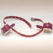 Steel loop, Humane Restraint L-300 locks, 12/13 oz leather, light orthopedic leather lining, and rivets.