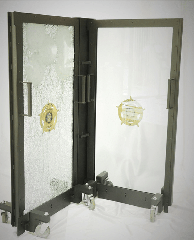 Place these side by side and create a 100% Ballistic Partition! Designed to overlap and interlock for ZERO Ballistic Penetration across the face! Even a “bull rush” by a crowd won’t get through! Laser-cut Ballistic Steel has smooth edges, and radiused corners with a beautiful powder coat finish! Your choice of color! We even have an optional drop-down shield to take protection to the floor!