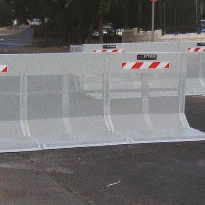 The Mifram Modular Crowd & Vehicle Barrier is an innovative design developed as an ultimate protective solution against both hostile crowds and ramming cars at the same time. It can stop vehicles by diverting the car's forward momentum to the ground while preventing rowdy crowds from turning the barrier over by utilizing the masses' weight as an anchoring force. The "L" shape design of the barrier enhance this feature by allowing the crowd or the vehicle's wheels to climb on the barrier and press it firmly to the ground.