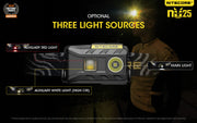 The NU25 is back lighter and more powerful than before with a dual beam spotlight and floodlight for a combined 400-lumen max that can reach out to 70 yards. Equipped with an upgraded unibody optical lens system switch freely between a primary spot LED, offering three brightness settings, to the flood LED for even wide illumination, ideal for close-up tasks and reading. Alternatively, switch to the dual red auxiliary LEDs and protect your night vision or long-lasting signal light. The NU25 is rated IP66 water resistant, features a bold new aerodynamic unibody design that efficiently dissipates heat, and looks stylish to boot.