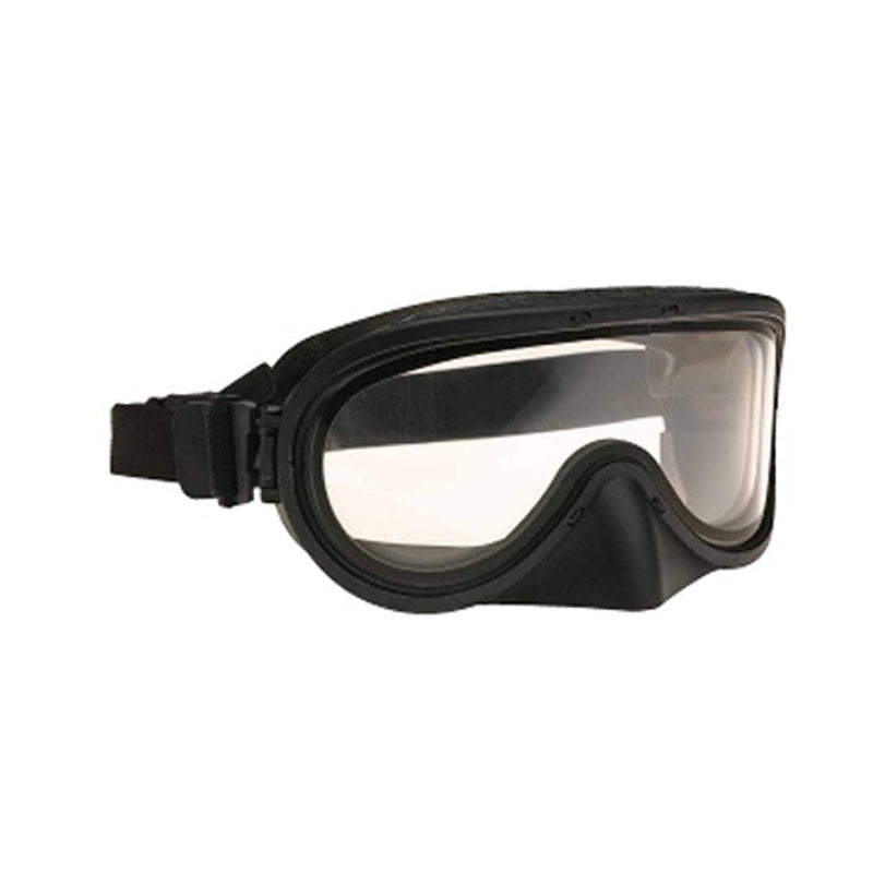 Protective Goggle with Nose Shield. Transparent Polycarbonate Triple Lens design with hard coated outer lens, center fragmentation lens, and anti-fog inner Spall lens. A protective goggle designed to specifically address the needs of a tactical operation that may require fragmentation protection. Triple lens designed with a hard coated outer lens, center fragmentation lens and an anti-fog inner Spall lens. Baffled top and bottom vents. Quick Strap” elastic adjustment.