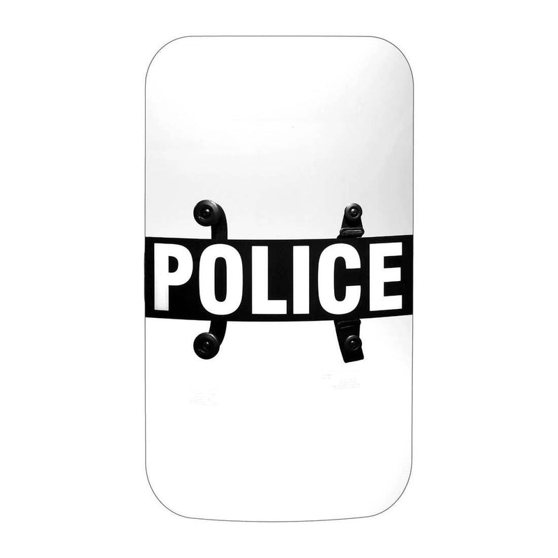 A hand held body shield with ergonomic features. Shield is .150" thick, 20" wide and 36" tall with a formed radius. The ID label that is supplied must be specified at the time of the order.