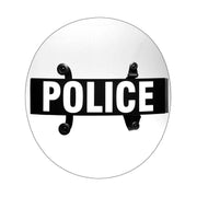A hand held body shield with ergonomic features. Shield is .150" thick, 24" round with a formed radius. The ID label that is supplied must be specified at the time of the order