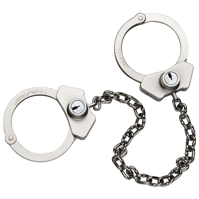 The Model 703CHS is a high security leg iron designed for high risk prisoner restraint and transport situations. The Model 703CHS does not operate with a standard handcuff key. The Model 705CHS incorporates Model 705C Oversize Leg Iron with a MEDECO or ASSA Desmo high security lock system and aluminum housing.