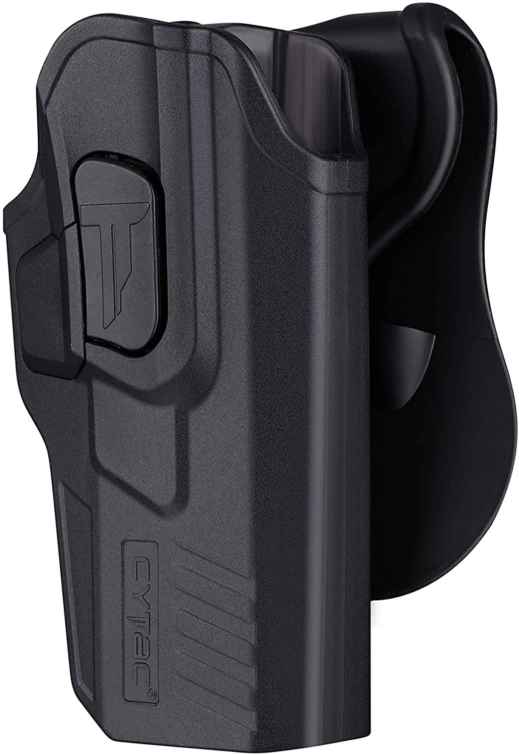 - QUALITY POLYMER MATERIAL - The Cytac polymer holster is composed of durable high-tech military-grade polymer material making it light-weight, durable, sweat and water-resistant. Unlike leather or other holster materials, it can use cleaning cloth with soap and water to wash