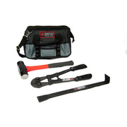 14" 3 lbs sledge hammer and 14" bolt cutter. This kit is excellent for emergency situations or light duty entries.
