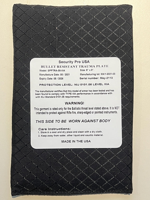 Sec Pro USA Soft Trauma Plate NIJ Level IIIA - 5x8 (Black)