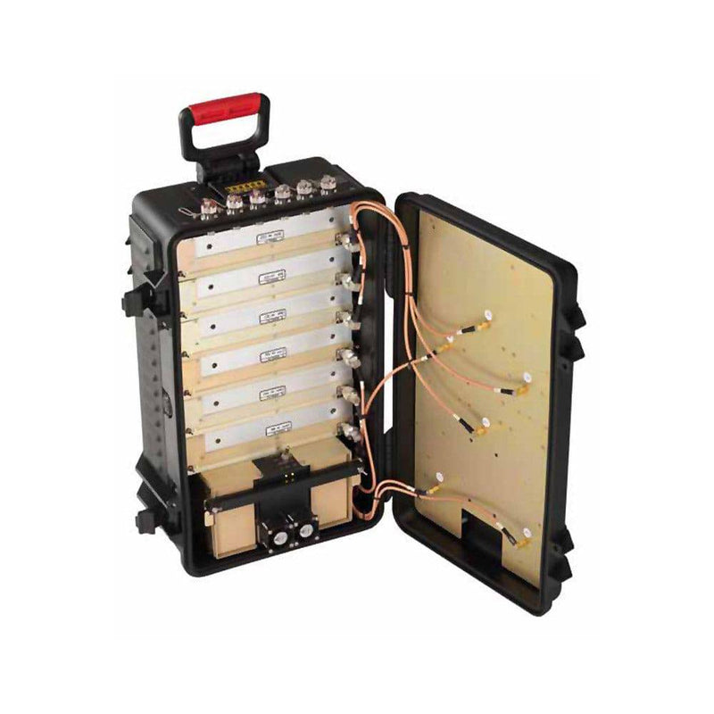 The SecPro 180W Multi-Band Trolley Jammer is the newest iteration of our tried and tested multi-band digital jamming system. It now also covers combinations of VHF/UHF bands and of 500-6000 MHz bands, for a total of 6 bands each system. The jammer is compact and with a very high power in respect to its size and weight. Equipped with the efficient GaN Technology Power Amplifiers, High-Tech Li-Ion Rechargeable Batteries, High-gain Directive Internal Antennas and Digital Jamming Technology, the HPRC is one of the most complete transportable systems in the market.