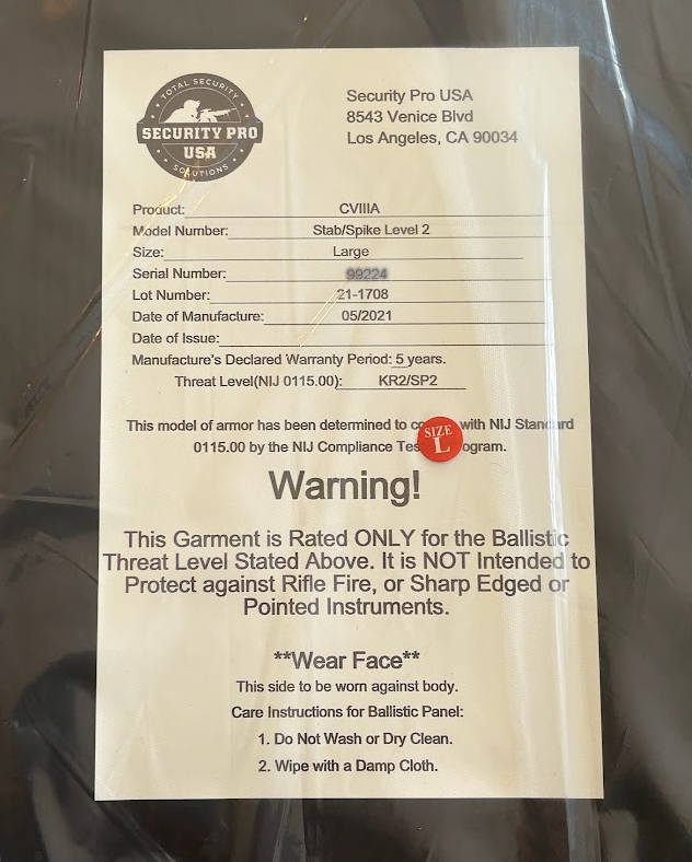 (2021)SecPro CVIIIA anti stab/spike level 2 Panel Insert(set)