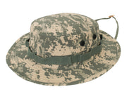 Classic Boonie Hats are functional & fashionable and made to government specifications. Boonie Hats feature 4 screened side vents, loops woven into the sides for leaves and branches and an adjustable chin strap and are made from a poly/cotton material.