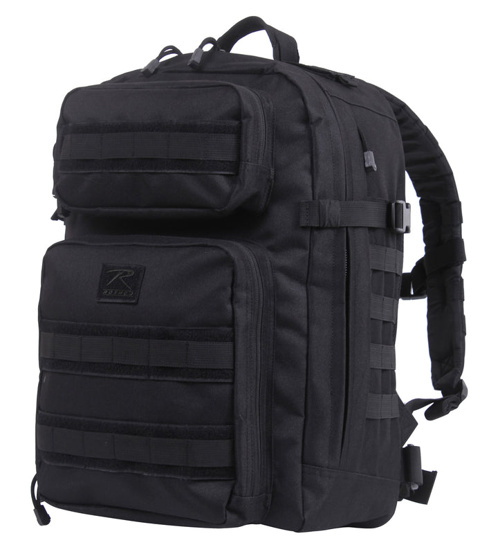 Fast Mover Tactical Backpack features an enhanced design to aid in comfort, durability, and all-day mobility. Made of a sturdy 600 denier polyester, the tactical pack measures 10" x 12" x 19" and features multiple compartments ideal for securely storing gear. The large main compartment (6.5" x 12" x 19") contains three mesh pockets with a zipper closure as well as one pocket with a drawstring closing. There are also two secondary compartments on the front of the pack. The top section (2" x 9" x 5") contains 2 open-top pockets and 4 elastic loops for loose objects. While the lower section (2" x 9" x 10.75") contains 4 open-top pockets, 1 zippered pocket, and 4 pen slots. Fast Mover Pack also features dual hidden side compartments that are ideal for storing compact gear such as a pocket knife, multi-tool, and important documents. The padded back and contoured yoke-style shoulder straps evenly distribute the weight of the pack. The fully adjustable and removable sternum and waist straps provided added stabilization and weight distribution pack for all-day comfort. In addition, the tactical pack features dual-sided cinch straps, top carry handle, and double zippers. Fast Mover Tactical Back is MOLLE compatible with MOLLE webbing on the side and front of the pack. The tactical bag is also hydration compatible with a bladder insert and dual pass-through ports for a hydration hose.
