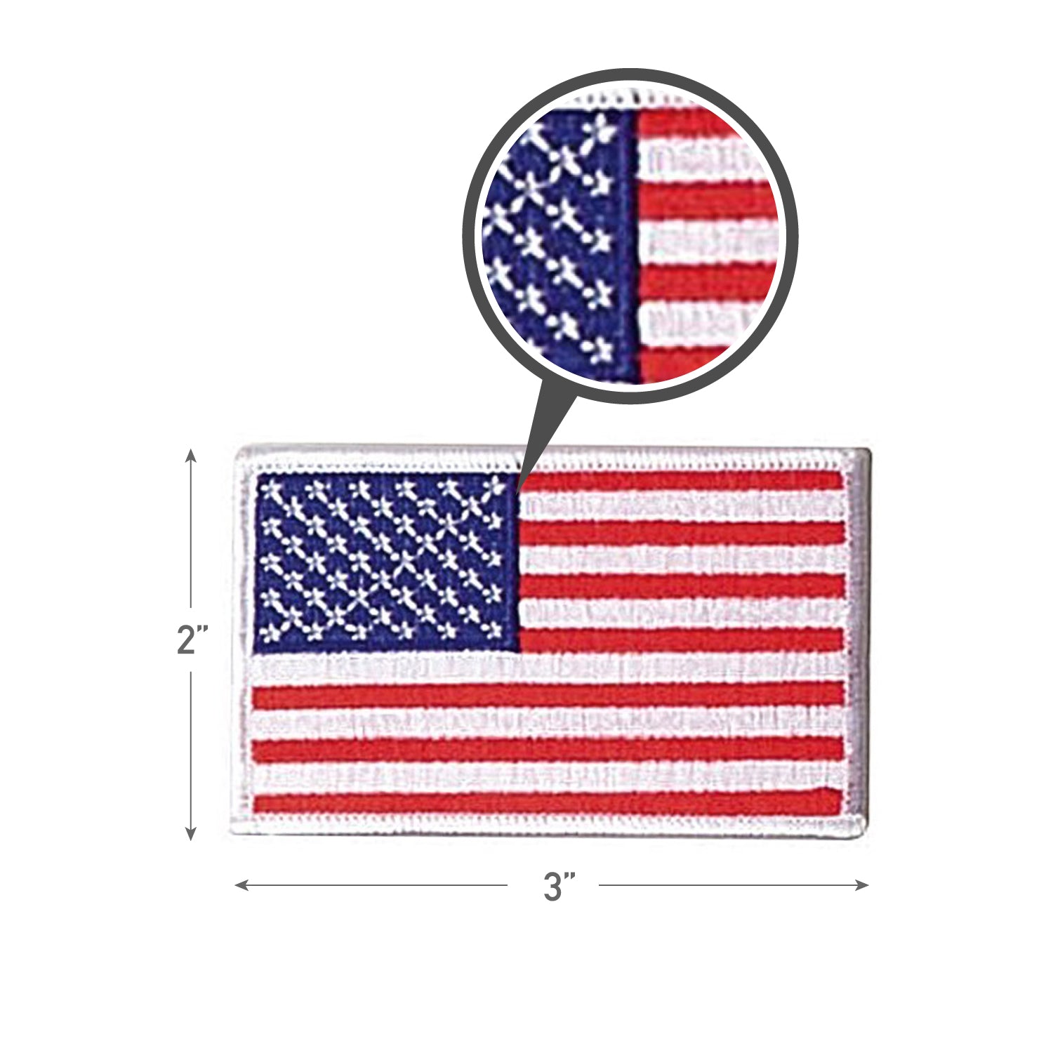 Wear your American pride with Iron On / Sew On Embroidered US Flag Patch. This patch is impeccably embroidered with the American flag, exhibiting top quality detailing. Our U.S. flag patch is sold in normal and reverse orientations, allowing you to properly display the patch. Additionally, this US patch features both iron on or sew on installment options, giving you the freedom to apply the flag patch as you see fit. American flag patch measures 2ƒ?� x 3ƒ?� in size. This morale patch is a must-add to your tactical gear, clothing and uniforms!