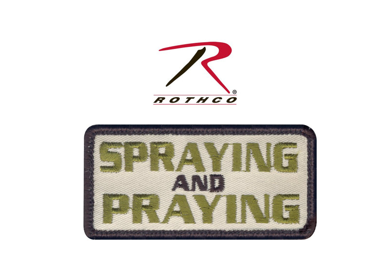 Spraying & Praying Morale Patch features hook backing making it ideal to attach with our Spec Ops Tactical Jackets, Operator Caps, and Tactical Vests.