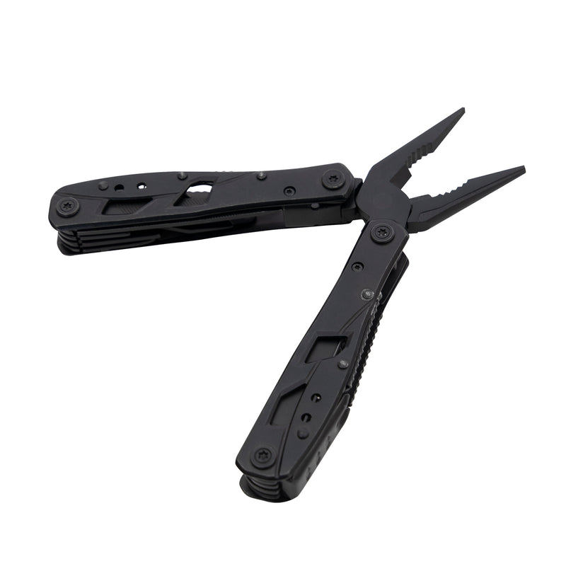 For the avid outdoorsman and tactical enthusiast, Multi-Tool contains over ten different versatile tools; perfect for your Bug Out Bag. The top of the multi-tool includes needle nose and regular pliers, and wire cutters; the staple for any great multi-tool. One side features a serrated saw blade for cutting wood, Philips and flathead screwdrivers, and a straight edge blade for cutting packages, cloth and other items. On the opposite side, the EDC tool contains a bottle / can opener, scissors, a small flathead screwdriver, and a nail file. When you are done with each tool, the pushbuttons will unlock the tools so you can put them away. The heavyweight design is made of strong stainless steel and can be locked shut (4Ÿ?� long closed) for storage. The survival multi-tool comes with a snap button carry pouch and belt loop for easy access.