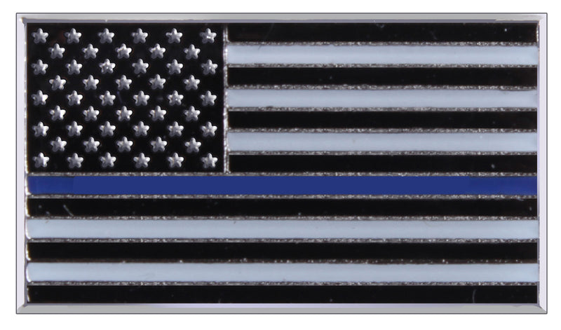 The Thin Blue Line is a symbol of respect and support for Police and Law Enforcement Officials; show your support with the Thin Blue Line Flag Pin. This US flag pin is brass plated with a thin blue line in the center and measures 3/4" x 7/16".?ÿ