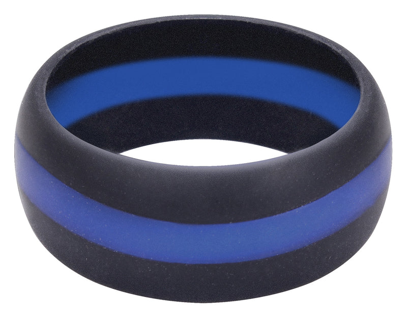 Thin Blue Line Silicone Ring is ideal for law enforcement professionals looking to prevent finger injuries caused from wearing a ring. The ring is made of a medical grade silicone that is non-conductive which provides a safe, durable alternative to the traditional metal wedding ring. With a tensile strength of 80kgf, this silicone ring is meant to stand up to extreme pressure when put to the test. The Thin Blue Line center shows?˜respect and support for Police and Law Enforcement Officials.