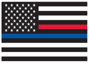 The Thin Blue Line and Thin Red Line are symbols of respect and support for Police, Law Enforcement Officials and Firefighters; show your support with the Thin Blue Line & Thin Red Line Flag Decal. The decal, which measures 3" x 4 1/4", features a gum back that can be applied to any clean, dry surface. Great for cars and home windows.