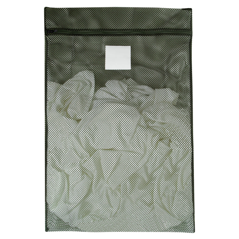 Conveniently store and wash your uniform and clothing with Washable Zippered Mesh Laundry Barracks Bag. The barracks bag features a rustproof plastic zipper closure and an elastic zipper holder to prevent the zipper from un-zipping while in the washer machine, so you can wash the laundry bag and the contents all at once. With an overall size of 24Ÿ?� X 36Ÿ?� and a material composition of 100% polyester, the washable laundry bag will bear the weight and size of multiple daysŸ?? worth of laundry. The Army laundry bag is fully meshed, preventing clothes from snagging in the washer machine and dampness by increasing airflow. On the front of the military laundry bag contains a 4 ?®Ÿ?� X 4 ??Ÿ?� center patch to write your name and other information so the bag is not misplaced or taken by accident. Ideal for washing military uniforms, delicates, activewear, and everyday clothing.?˜?˜