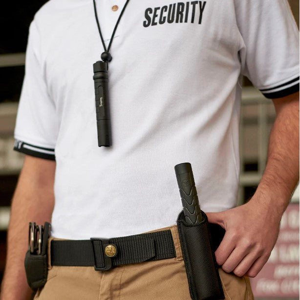 The distinctive Strike Force grip of the Sentry Baton is complemented by 4130 steel shafts and a black chrome finish. The Sentry Baton has a powder coated steel cap and aluminum base retaining clip. Function of the Sentry Series is identical to that of ASP 4140 Friction Loc Batons. The design accepts all ASP Logo, Grip, Leverage and Lanyard caps. The Sentry is compatible with ASP BreakAway, Nexus Baton Clips and Tactical USB light attachments. Sentry Batons may be carried in Cover, Duty, Federal or SideBreak Scabbards. The 60 durometer Santoprene handle of the Sentry Baton provides a firm grip under the most adverse conditions. Designed for the security professional, the Sentry Series offers a moderately priced alternative to ASP Friction Loc (4140) expandables.