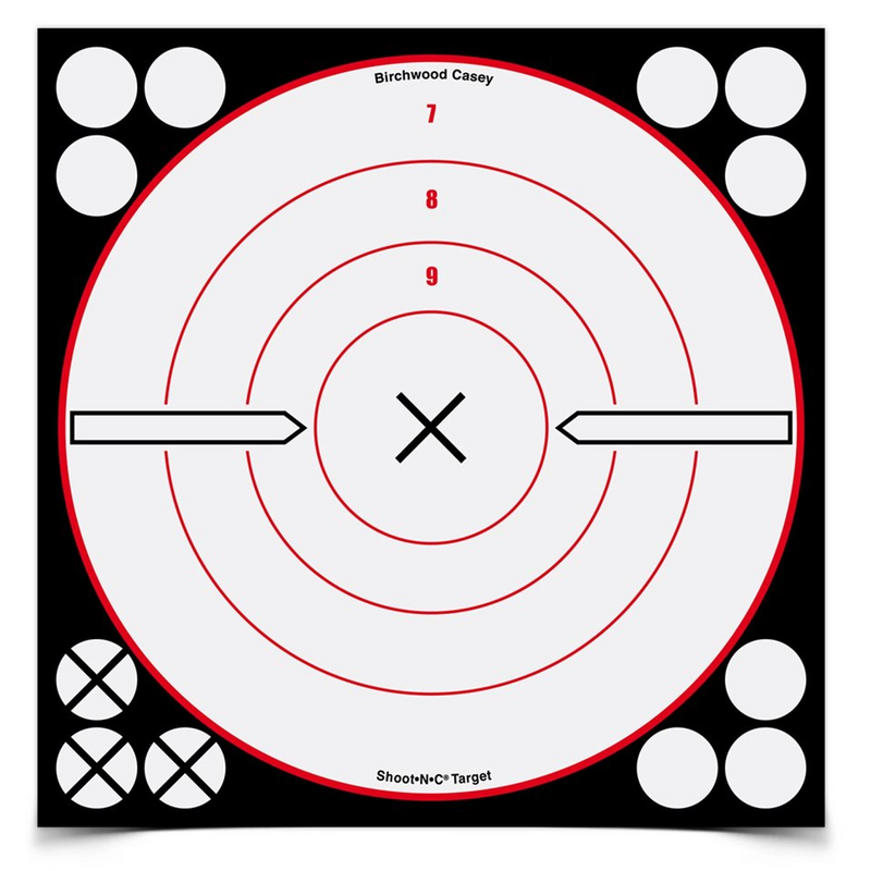 Capture the same Shoot-N-C experience in white and black. The contrast of white over black makes an excellent indoor target. The black halo can easily be seen at many distances. When used indoors or outdoors, the white over black colors make seeing your crosshairs and open sights very easy. The added posts on the 8 and 12 inch targets make for great crosshair reference points. And, dont forget each target comes with value-added repair pasters to extend the life of your target by repairing bullet holes or as extra aiming points.
