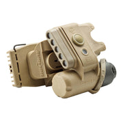Helmet Light features a durable, watertight polymer body in Desert Tan. Attaches to any Modular Integrated Communications Helmet (MICH) via an included ambidextrous mount with 20 preset positions that allow the light to be rotated 360 degrees when attached. Once either mount has been attached to the helmet, Helmet Light can be quickly and easily slid on and locked securely in place. Pressing a lever on the mount unlocks the light, allowing for quick removal for servicing or transfer onto its optional Z71 carry clip, which attaches to any MOLLE or ALICE vest.