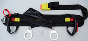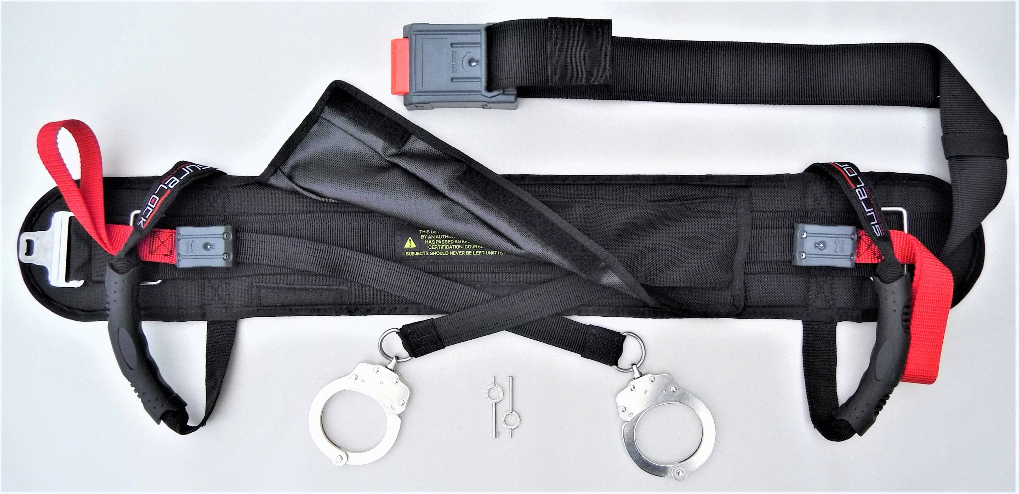 The SureLock M&P Waist Belt integrates high-strength Ballistic Nylon and two stainless steel braided cords for maximum durability and safety. The device is secured in the back using a proprietary lockable Main Buckle. Two cut-resistant tethers attached to our proprietary UniLock device allow for one-way restricted movement. All locks are released with a standard handcuff key.
