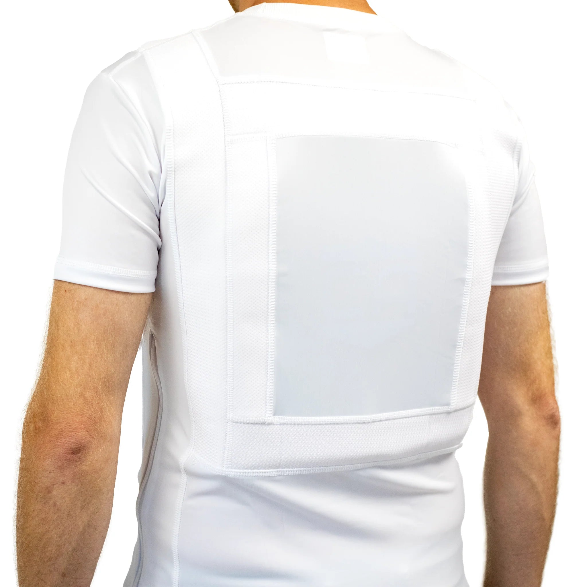 Designed as a concealment base layer, this lightweight compression shirt is engineered to work seamlessly with CaliberX Soft Armor Panels (sold separately). Its formfitting, breathable design ensures excellent concealment under both casual and professional attire, while moisture-wicking fabric keeps you cool and dry during extended wear.