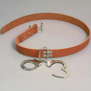 12/13 oz. leather, 1½" steel roller buckle, 1½" steel keeper, and a steel D-ring made to our specifications to fit virtually all handcuffs.