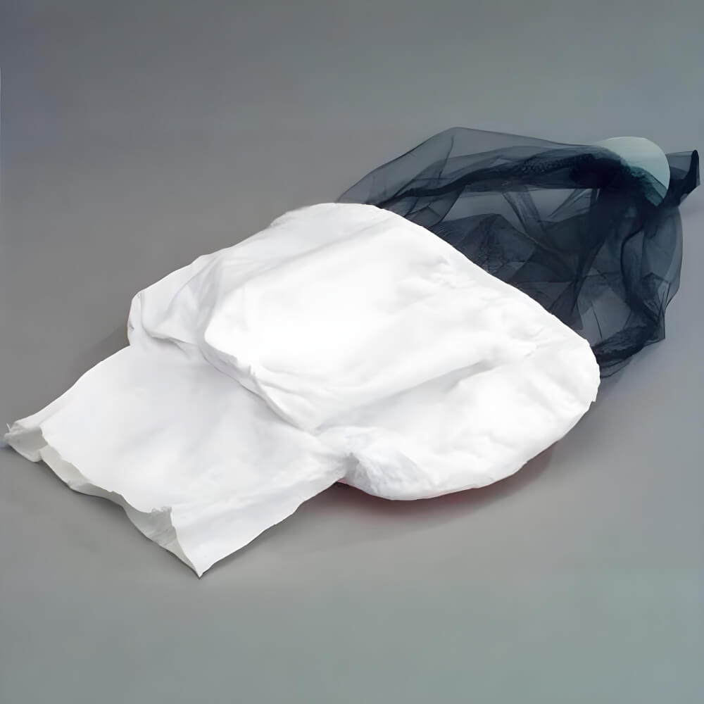 INSTRUCTIONS: Open bag and remove Hood. Place hood over the head of the person so the mesh fabric is covering the eye area (top) of the head, and the filtration fabric is covering the lower half of the head (below nostrils).
