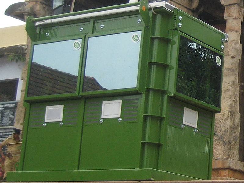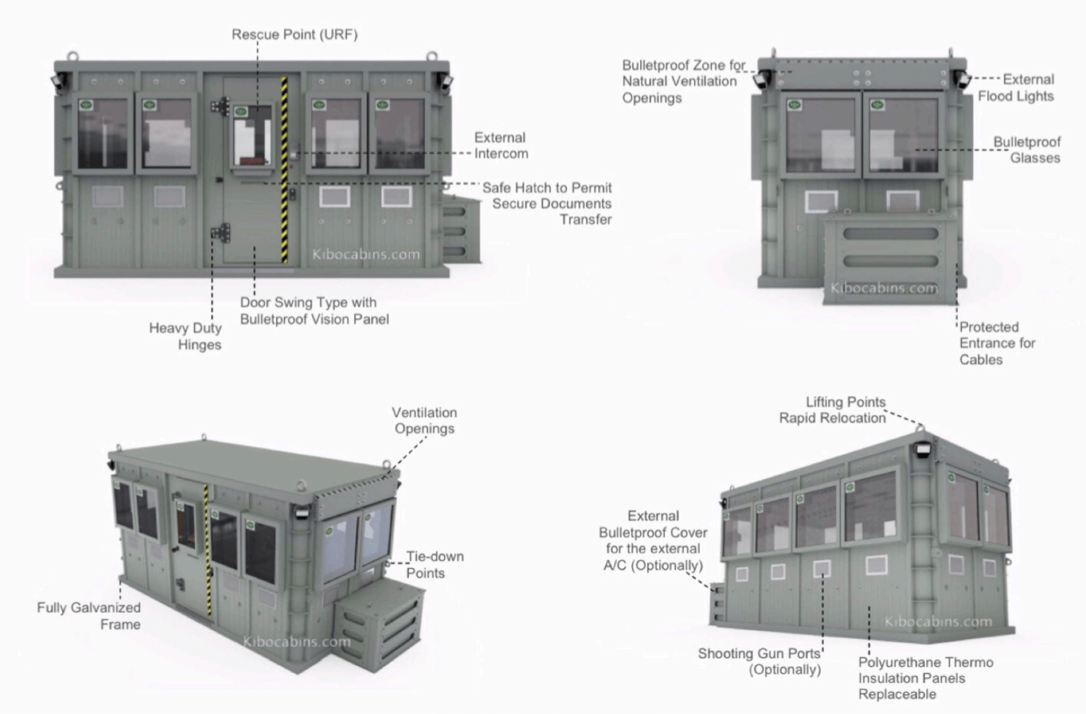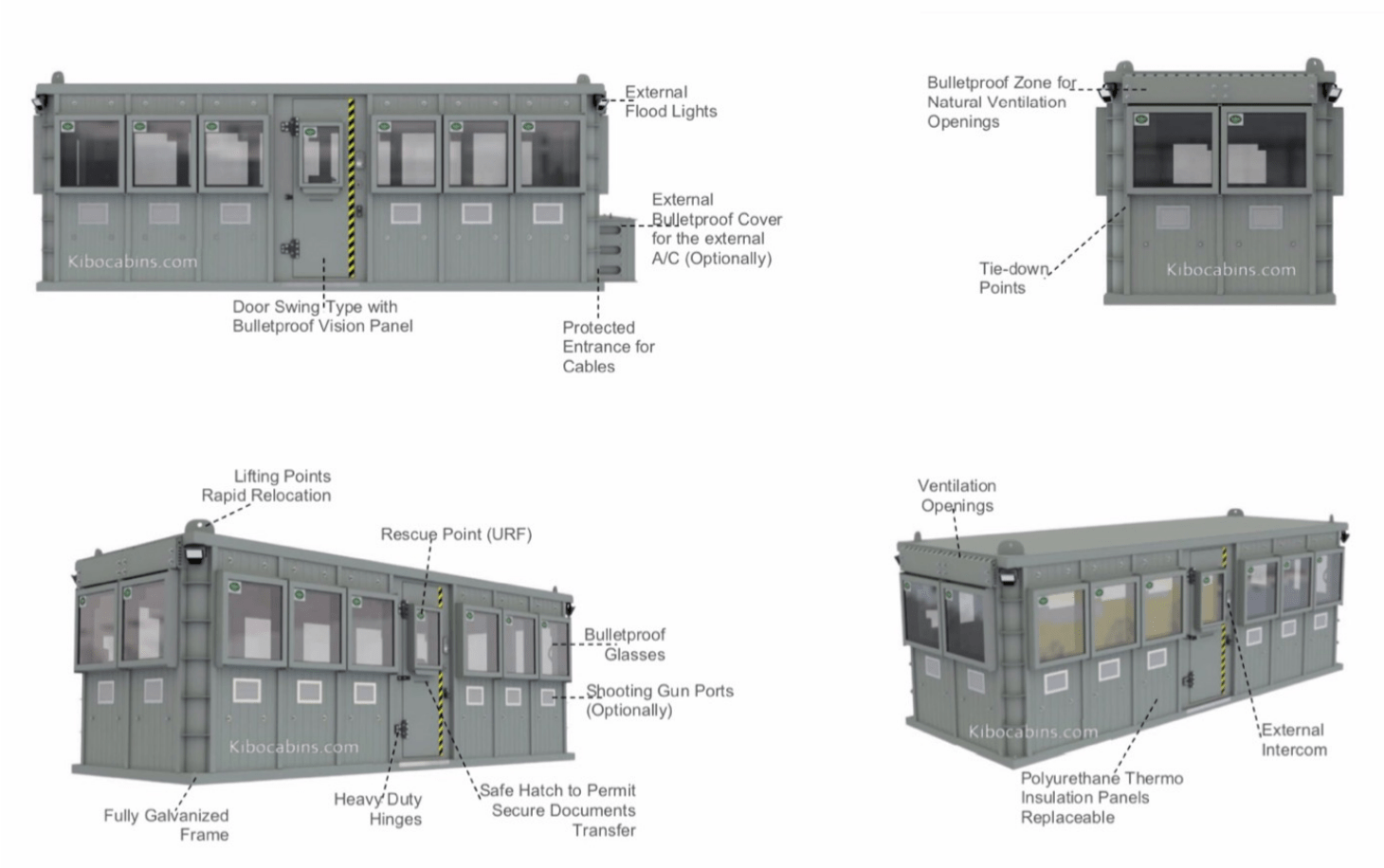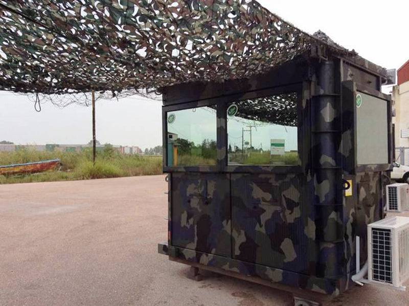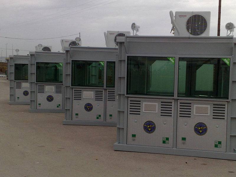 They can also be used at check points, as in this photo, when guards are required to screen people and vehicles entering and leaving a location where the building is again used to protect the guards as well as their equipment.